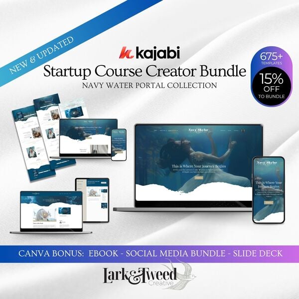 KAJABI & Canva | Startup Course Creator Bundle | Navy WATER PORTAL Collection