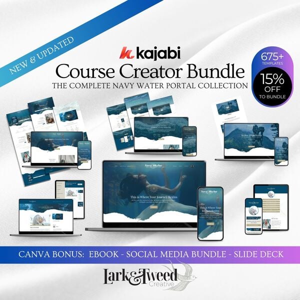KAJABI & Canva | Course Creator Bundle | Navy WATER PORTAL Full Collection