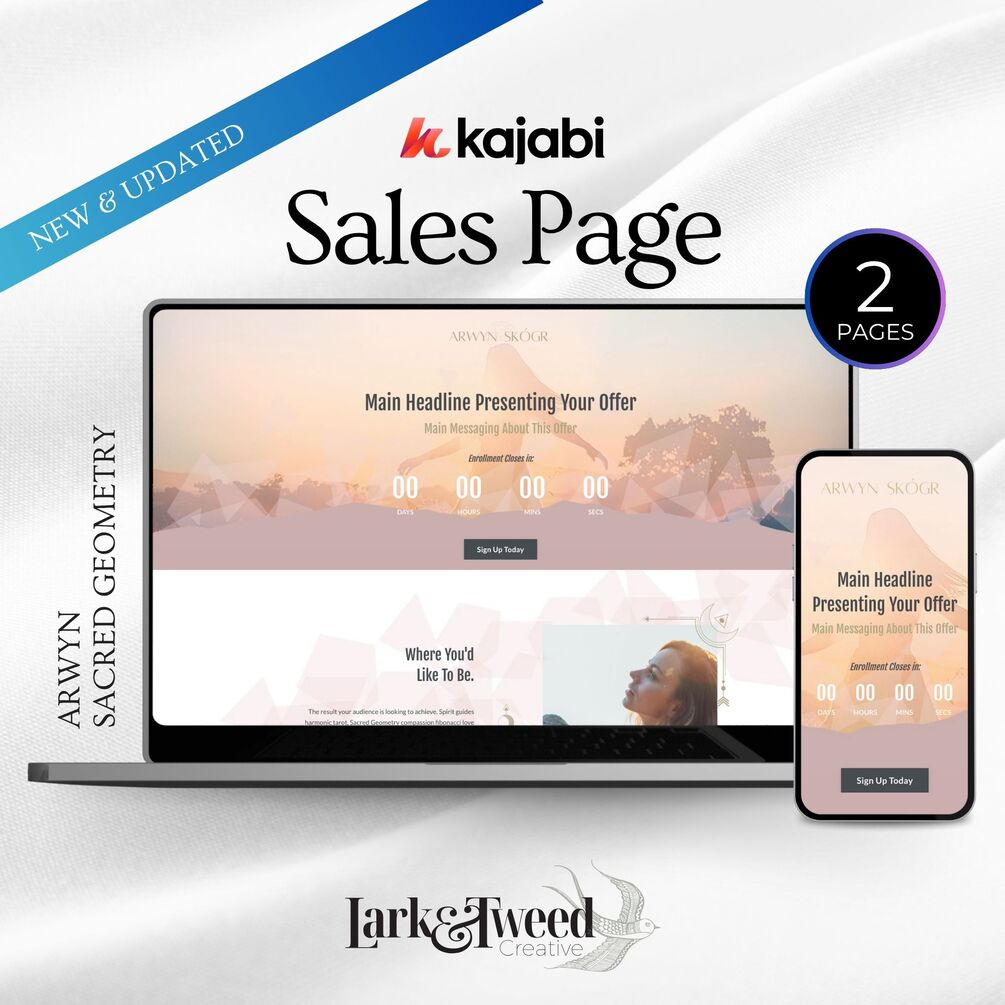 The Arwyn SACRED GEOMETRY Kajabi Sales Page Landing Page Template is a beautifully designed, prebuilt Landing Page themes for coaches, course creators, and spiritual entrepreneurs who are ready to elevate their brand and launch with confidence.