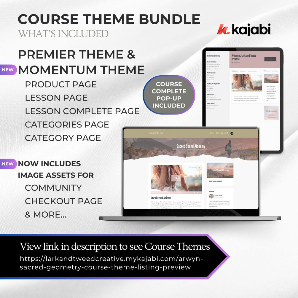 2 Kajabi Course Themes + 1 Course Complete Popup