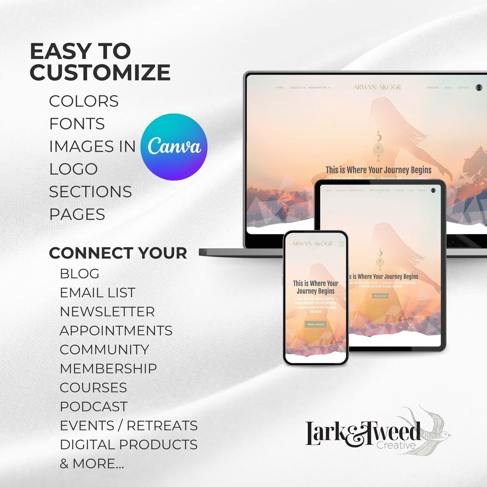 Designed by Lark & Tweed Creative, these Kajabi and Canva themes save you time, energy, and money—while giving you everything you need to show up with clarity, intention, and visual harmony.