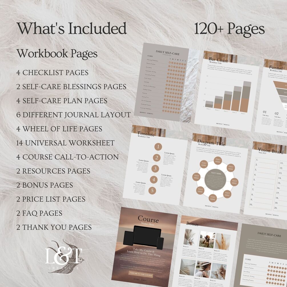 This Beautiful, BOHO Inspired, Ebook and Workbook Canva Template, will allow you to create such a beautiful and attractive mood for your audience. With over a 120 pages in both US Letter & A4 formating, you have unlimited possibilities and layouts to choose from. This will allow you to truly personalize your Ebooks and Workbooks to your current brand. Having been created in Canva, this also allows you the flexibility to change and adjust images, fonts, colours and more to your liking.