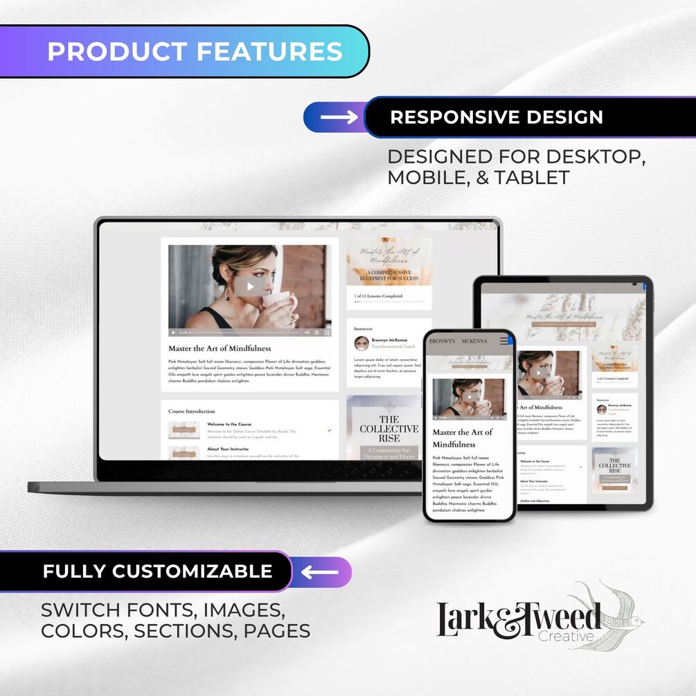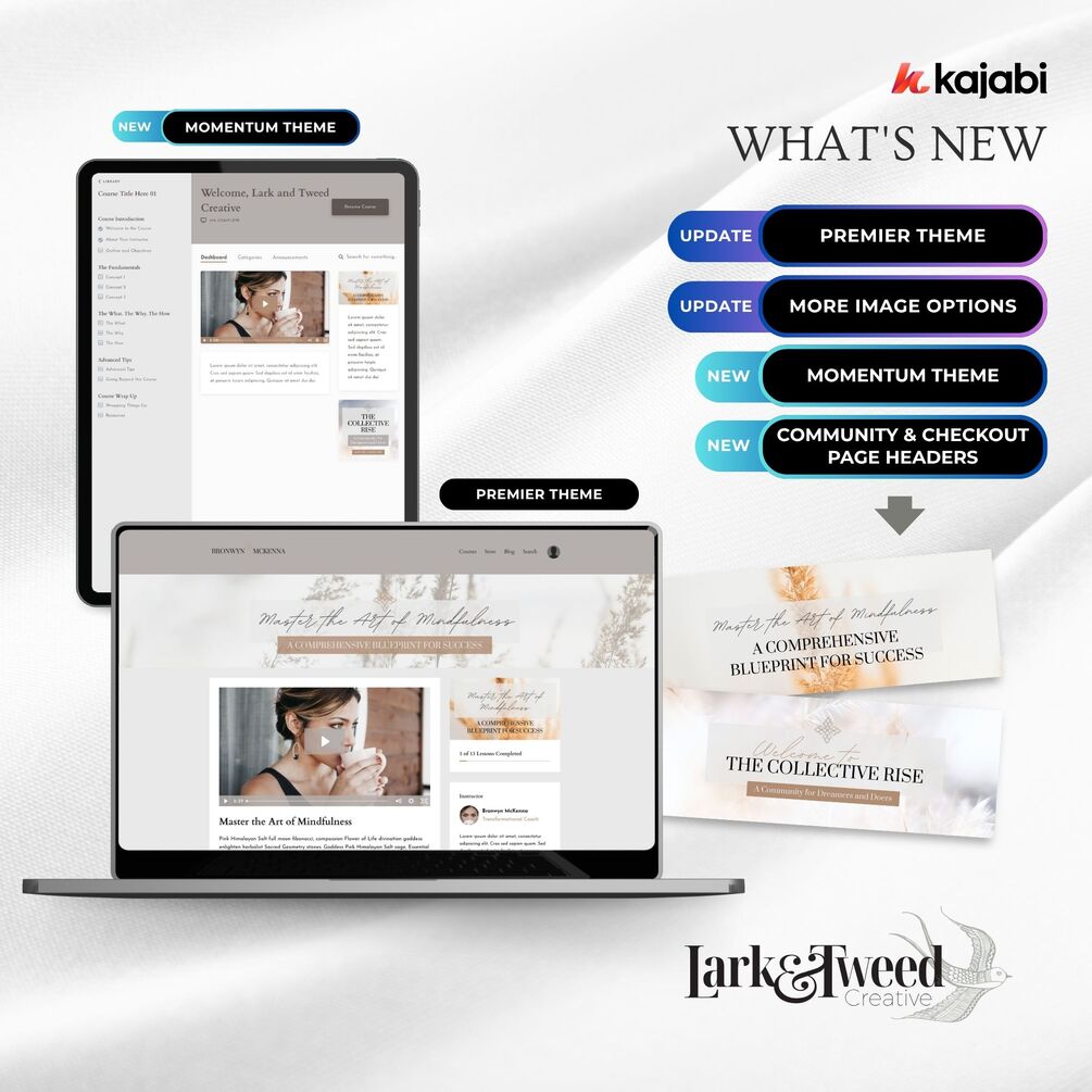 Designed by Lark & Tweed Creative, this Kajabi theme saves you time, energy, and money—while giving you everything you need to show up with clarity, intention, and visual harmony.