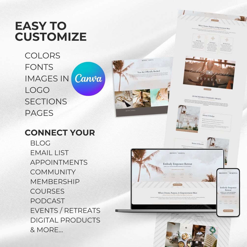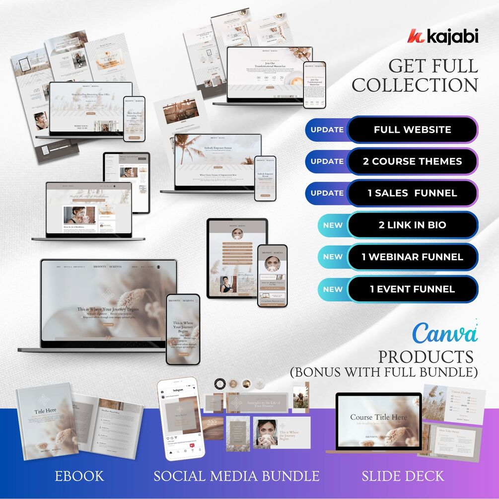 This theme is designed exclusively for the Kajabi platform and require Kajabi & Canva Pro subscriptions.