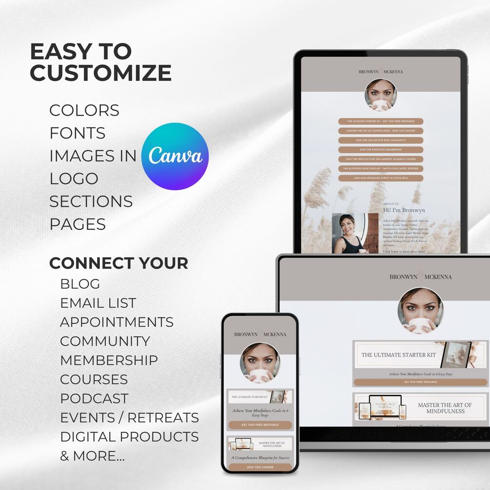 This theme is designed exclusively for the Kajabi platform and require Kajabi & Canva Pro subscriptions.