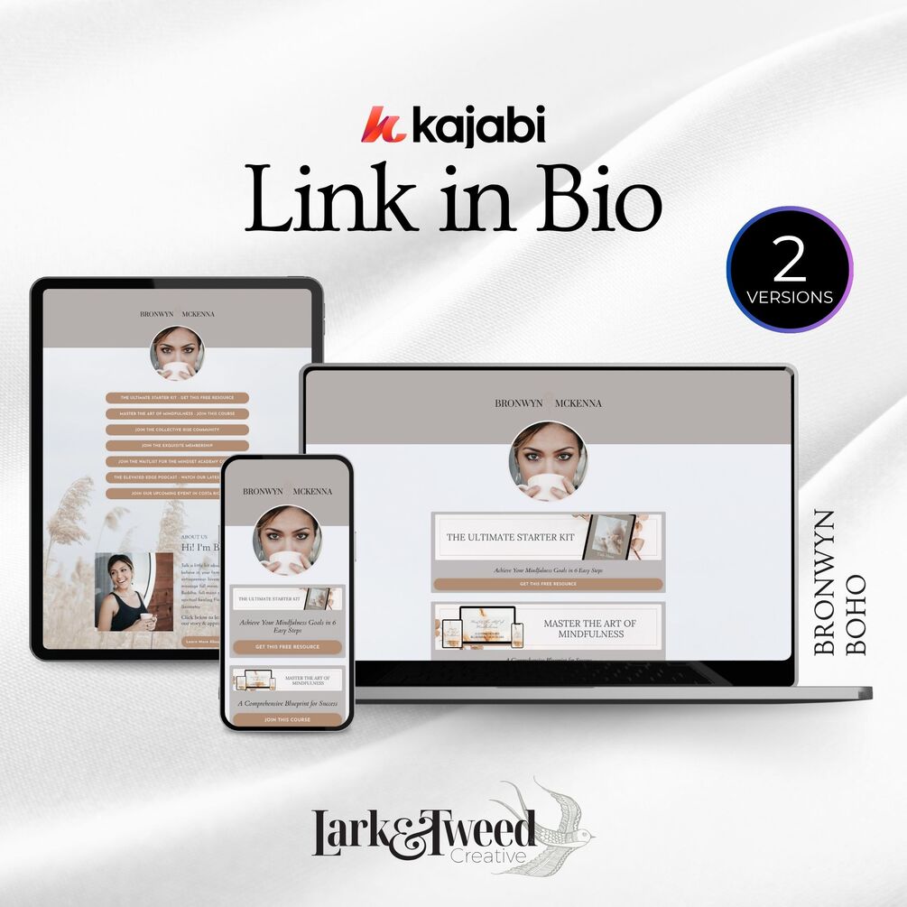 Designed by Lark & Tweed Creative, this Kajabi theme saves you time, energy, and money—while giving you everything you need to show up with clarity, intention, and visual harmony.