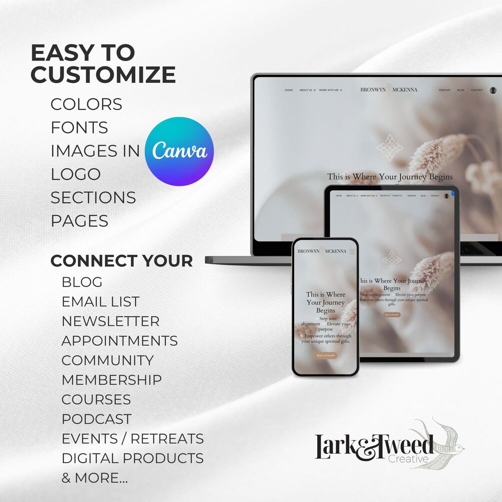 Designed by Lark & Tweed Creative, these Kajabi and Canva themes save you time, energy, and money—while giving you everything you need to show up with clarity, intention, and visual harmony.