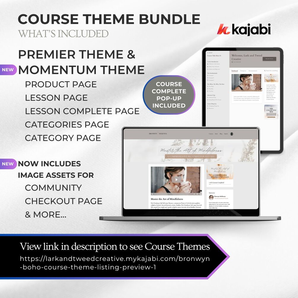 2 Kajabi Course Themes + 1 Course Complete Popup