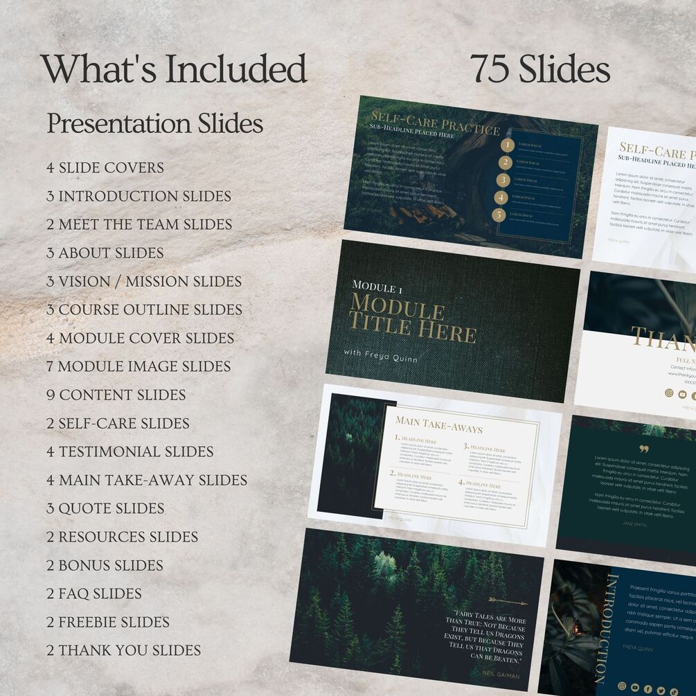 This Beautiful, Inspired by Fairies, Presentation Slide Deck Canva Template, will allow you to create such a beautiful and attractive mood for your audience. With over a 75 slides, you have unlimited possibilities and layouts to choose from. This will allow you to truly personalize your courses and presentations to your current brand. Having been created in Canva, this also allows you the flexibility to change and adjust images, fonts, colours and more to your liking. You can also use Canva and these slides to record your course and present to your community. This product requires a Canva Pro subscription.