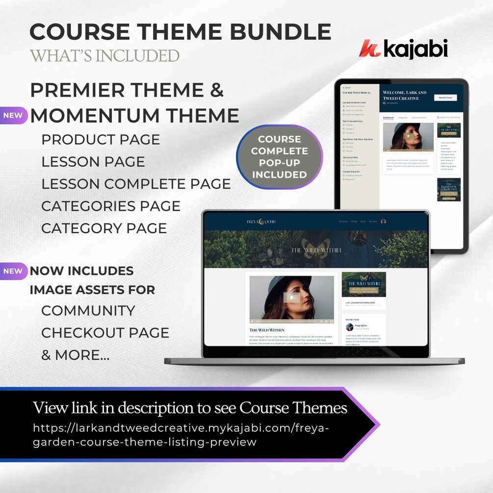 2 Kajabi Course Themes + 1 Course Complete Popup