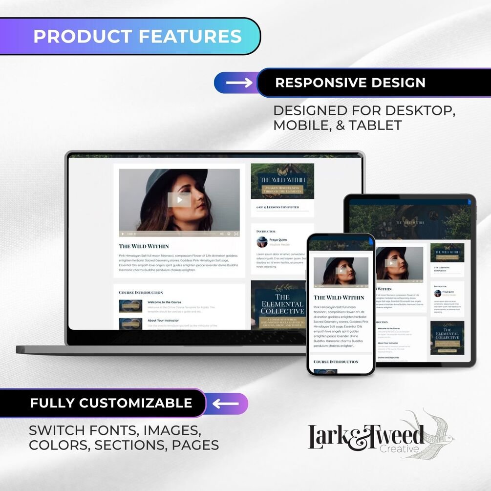 Designed by Lark & Tweed Creative, this Kajabi theme saves you time, energy, and money—while giving you everything you need to show up with clarity, intention, and visual harmony.