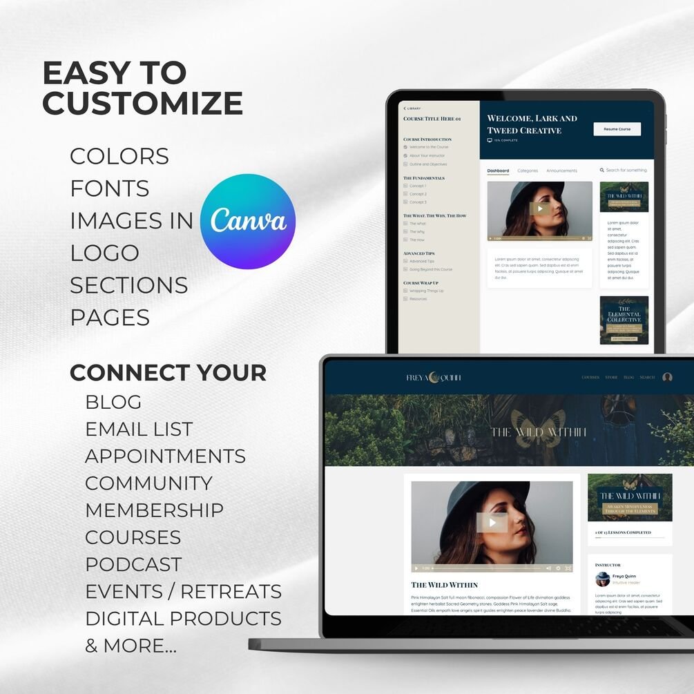 This theme is designed exclusively for the Kajabi platform and require Kajabi & Canva Pro subscriptions.