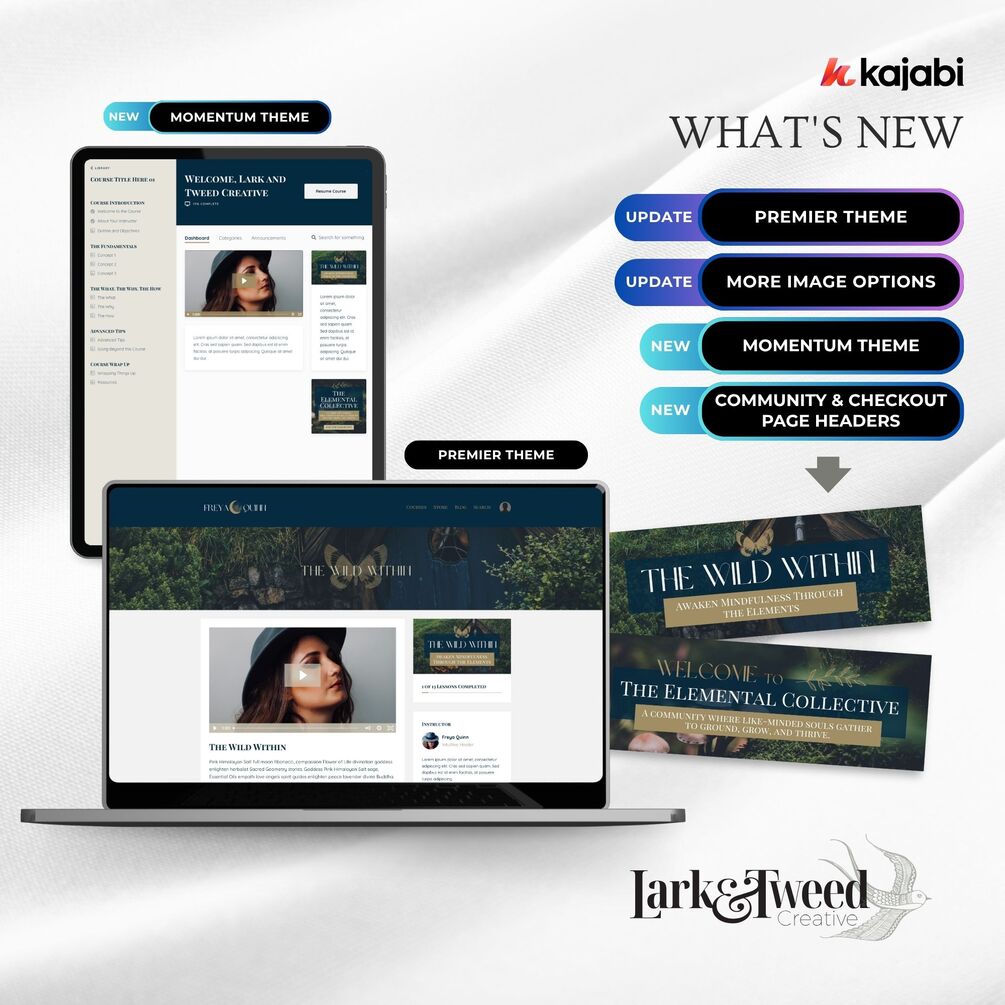 2 Kajabi Course Themes + 1 Course Complete Popup