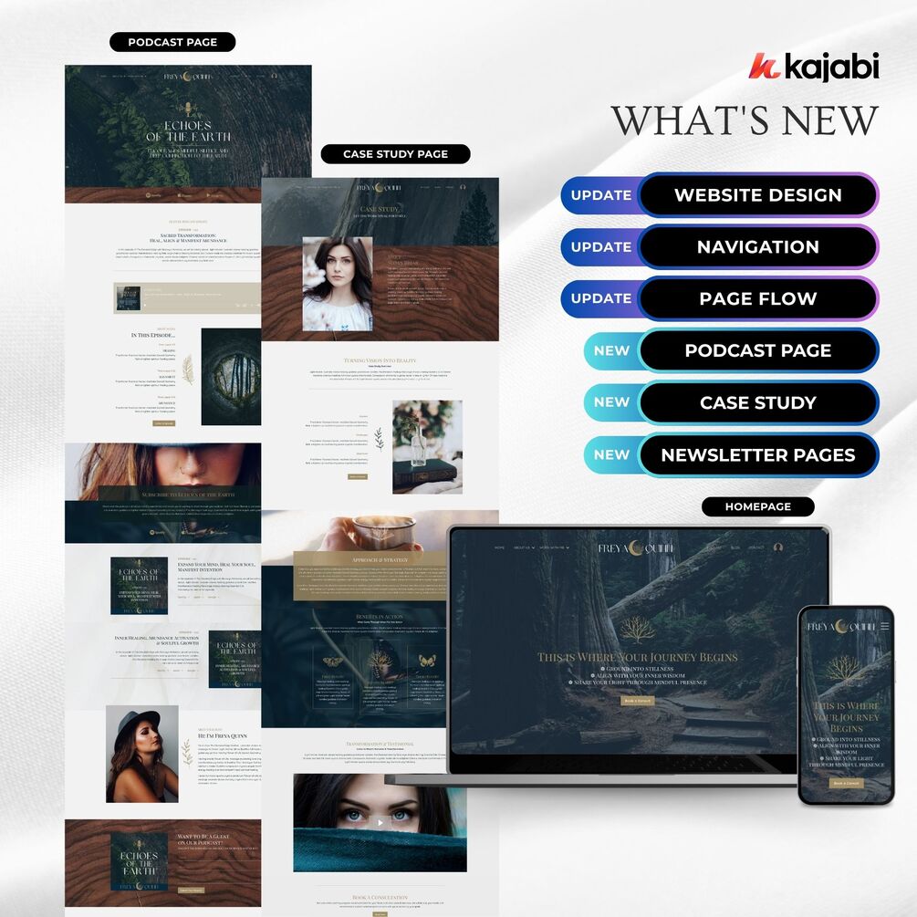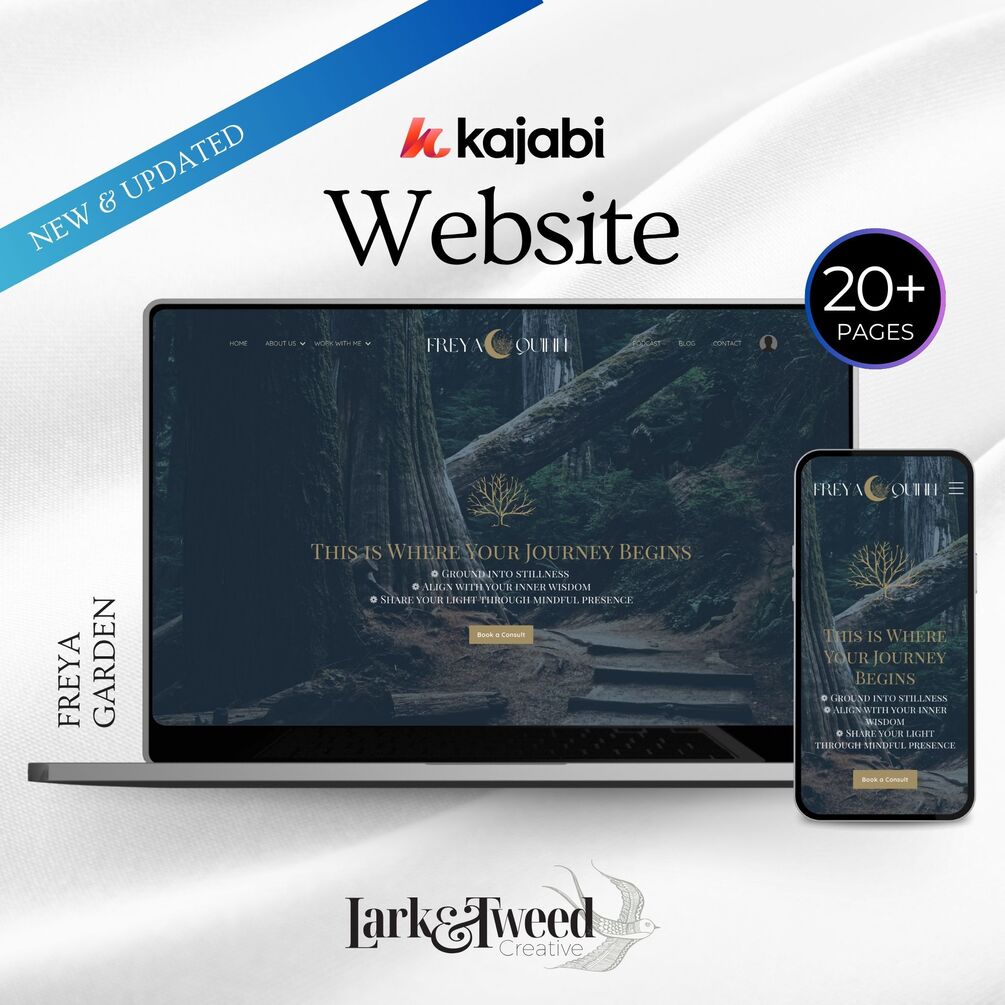 The Freya GARDEN Kajabi 20+ Page Website Template now with Podcast and Case Study Pages is a beautifully designed, prebuilt website theme for coaches, course creators, and spiritual entrepreneurs who are ready to elevate their brand and launch with confidence.