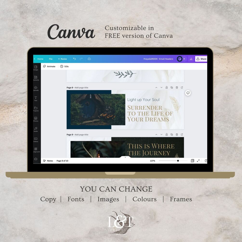 This Beautiful, Inspired by Fairies, Social Media Canva Template, will allow you to create such a beautiful and attractive mood for your audience. With over 430 social media assets, like Instagram Posts, Facebook Posts, Pinterest Posts, Instagram Highlights, and Stories, not to mention Social Cover and email headers. This bundle is all you need to get your business noticed on all channels. With this many options, you have unlimited possibilities and layouts to choose from. This will allow you to truly personalize social media to your current brand. Having been created in Canva, this also allows you the flexibility to change and adjust images, fonts, colours and more to your liking. You can also use Canva and these slides to record your course and present to your community. This product requires a Canva Pro subscription.