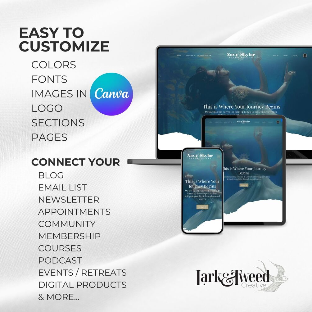 Designed by Lark & Tweed Creative, this Kajabi theme saves you time, energy, and money—while giving you everything you need to show up with clarity, intention, and visual harmony.