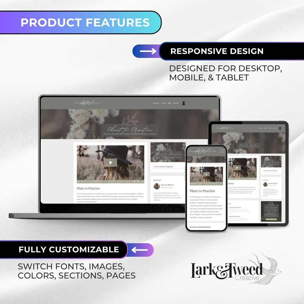 The Summer HERBALIST Kajabi Course Templates are beautifully designed, prebuilt product themes for coaches, course creators, and spiritual entrepreneurs who are ready to elevate their brand and launch with confidence.