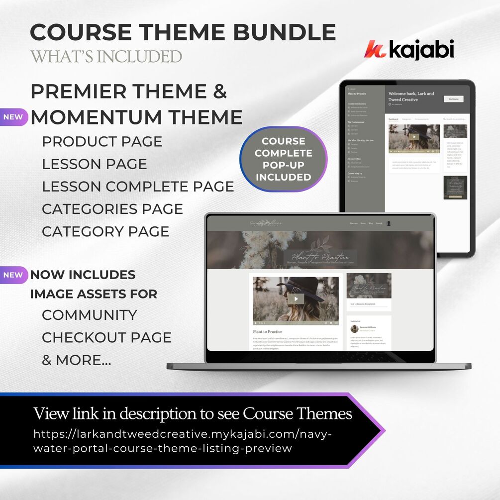 COURSE THEME PREVIEW2 Kajabi Course Themes + 1 Course Complete Popup