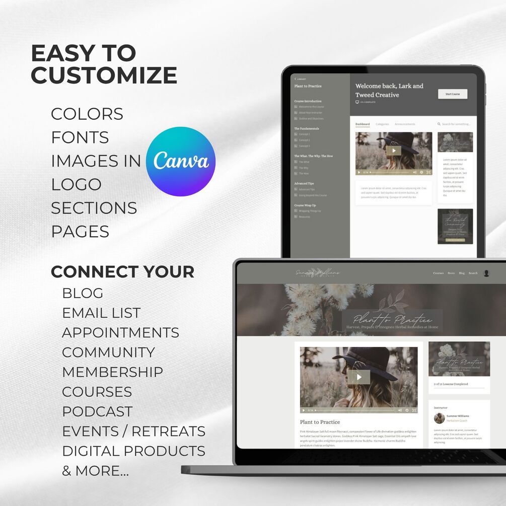 Designed by Lark & Tweed Creative, these Kajabi and Canva themes save you time, energy, and money—while giving you everything you need to show up with clarity, intention, and visual harmony.