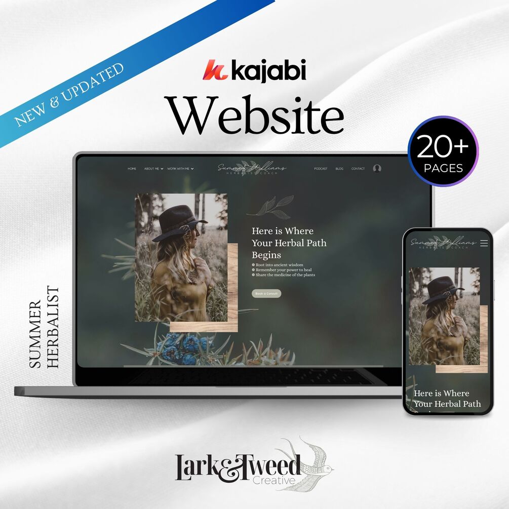 The Summer HERBALIST Kajabi 20+ Page Website Template now with Podcast and Case Study Pages is a beautifully designed, prebuilt website theme for coaches, course creators, and spiritual entrepreneurs who are ready to elevate their brand and launch with confidence.