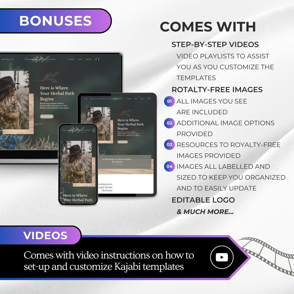 This template blends practicality & earthy design with soulful branding—giving you a high-converting, intuitive online presence without the overwhelm or cost of custom design.