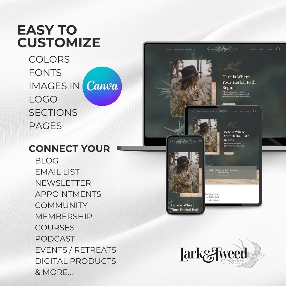 Designed by Lark & Tweed Creative, these Kajabi and Canva themes save you time, energy, and money—while giving you everything you need to show up with clarity, intention, and visual harmony.